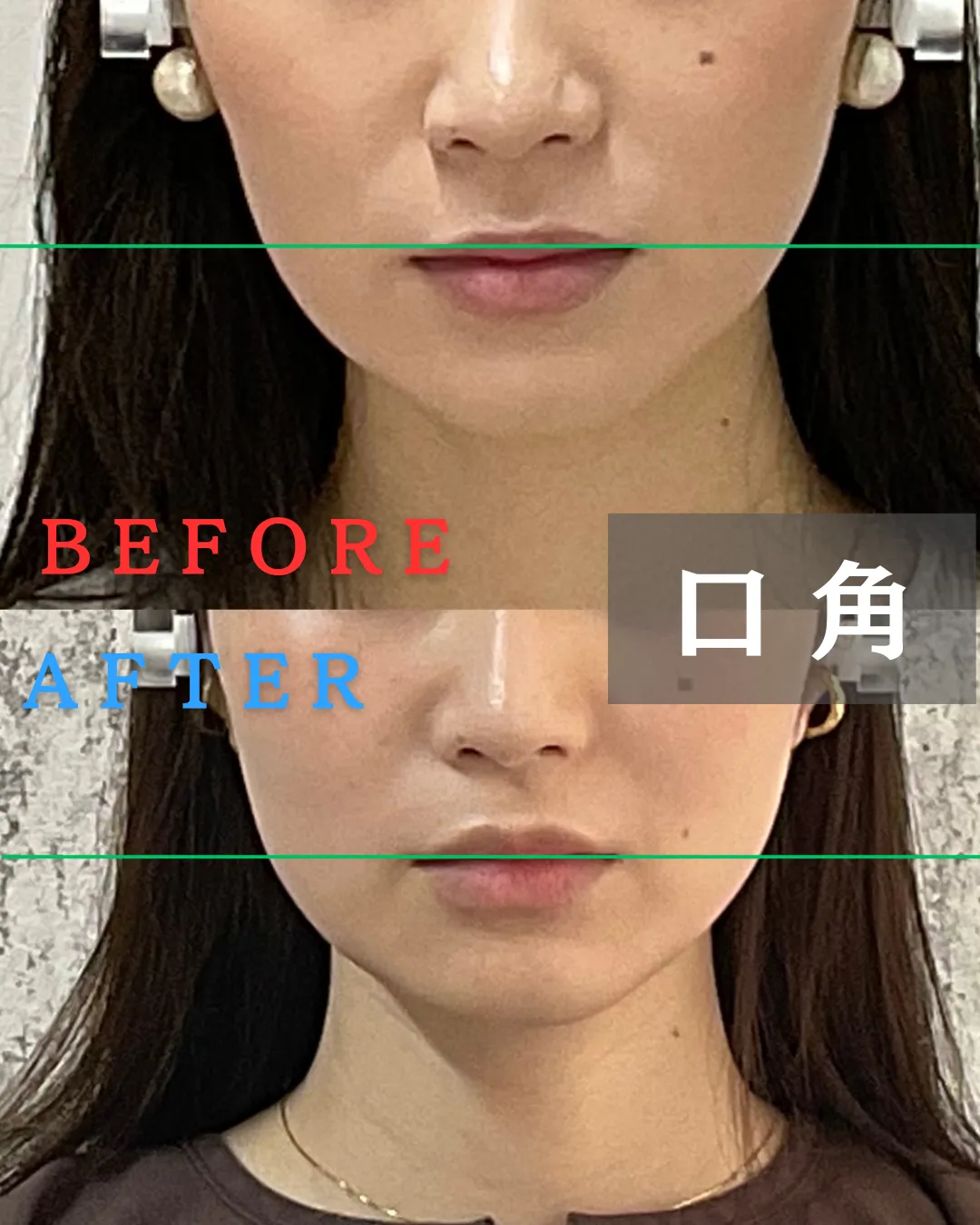 口角高さailes式 before・after 新宿・食いしばり・小顔矯正・顎関節症・顔の左右差ならailesシンメトリー矯正院