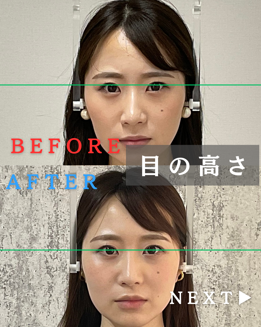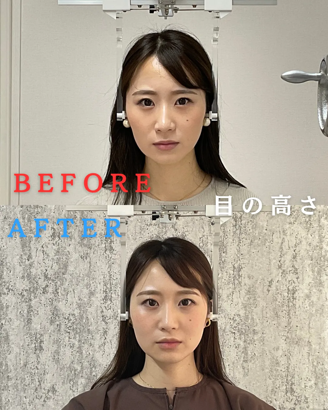 目の高さ 施術5回目BeforeAfter 新宿・小顔矯正・食いしばり・顎関節症・骨盤矯正・左右差・エラ張り