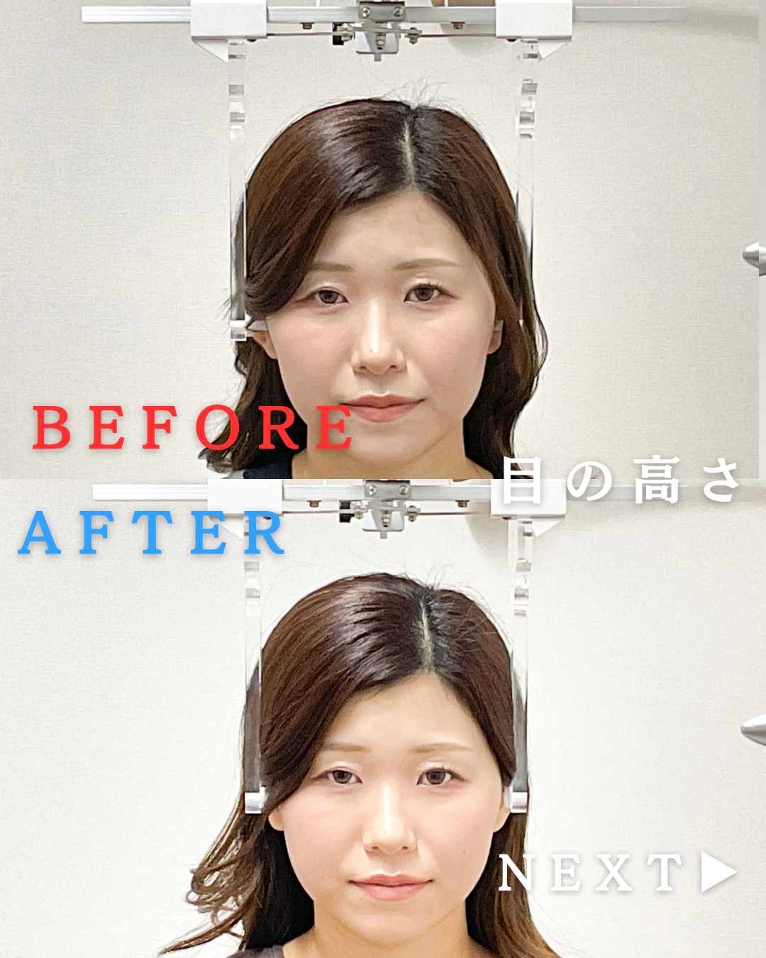 施術1回で、セルフケアもしていただいて、目の高さの左右差がだいぶ改善されています。