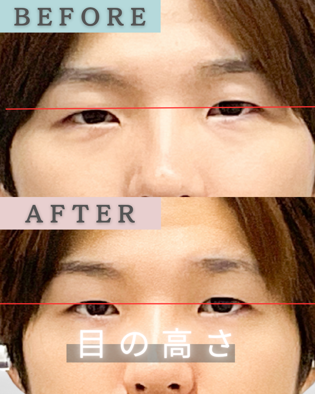 目の高さ 施術5回目ailes式 before・after 新宿・食いしばり・骨盤矯正・小顔矯正・顎関節症・顔の左右差ならailesシンメトリー矯正院