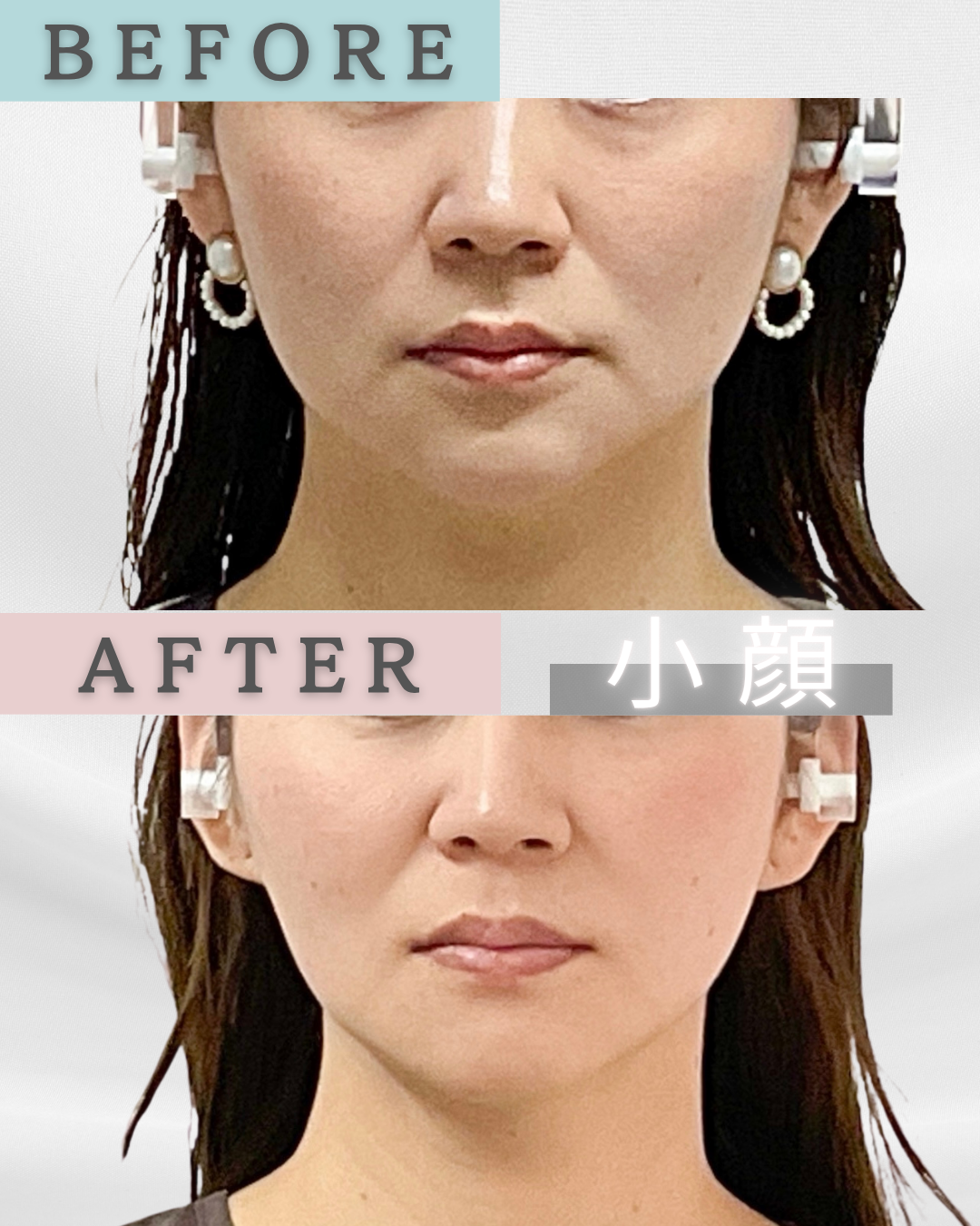 小顔 フェイスライン before・after ailes式 新宿・食いしばり・骨盤矯正・小顔矯正・顎関節症・顔の左右差ならailesシンメトリー矯正院
