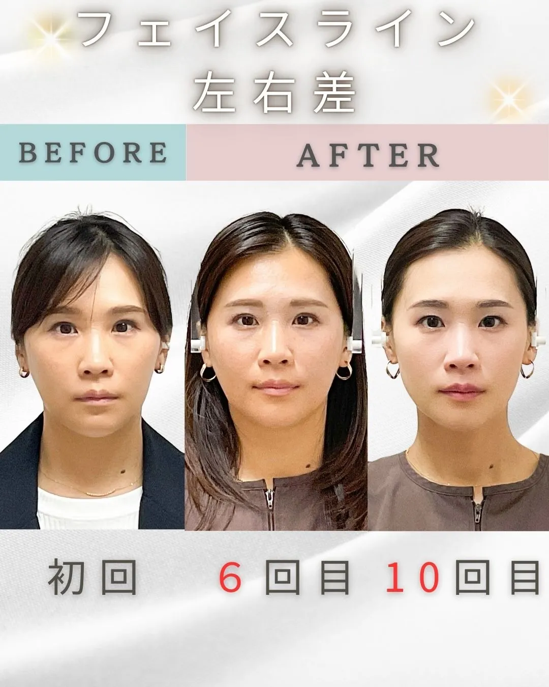 左右差のbefore・after ailes式 新宿・食いしばり・骨盤矯正・小顔矯正・顎関節症・顔の左右差ならailesシンメトリー矯正院