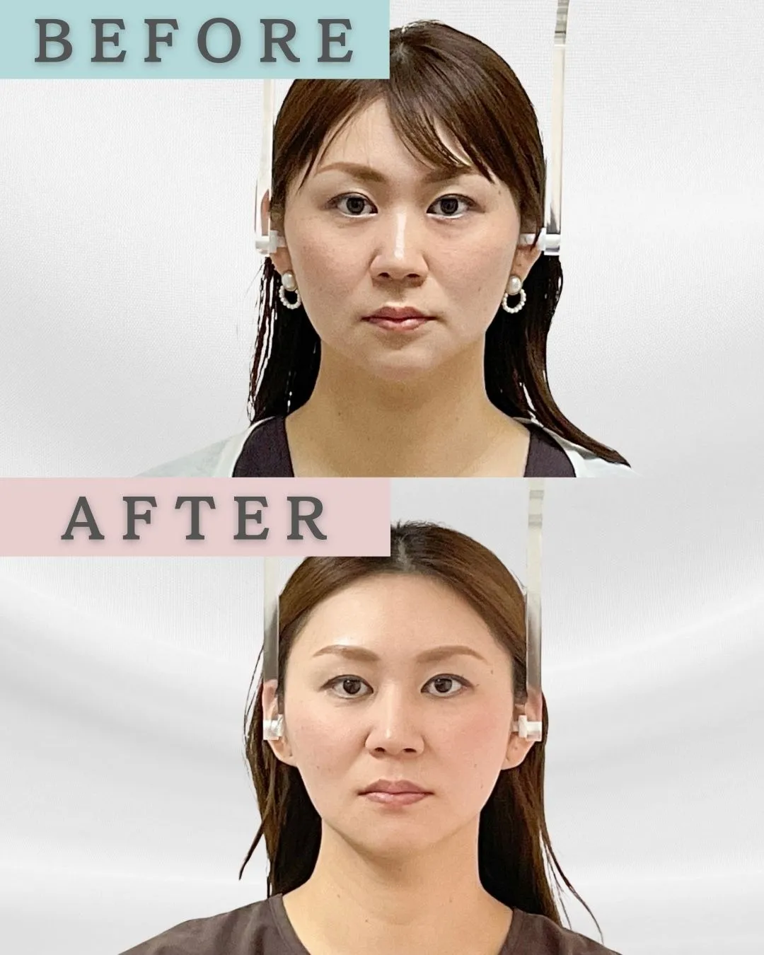 こちらのお写真はフェイスラインや中顔面のボリューム、ほうれい線がよくなりかなり印象が変わってきています!