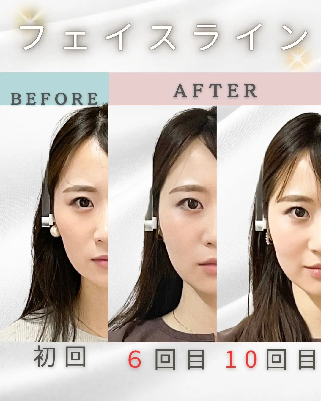 左右差 フェイスライン before・after症例写真 ailes式 新宿・食いしばり・骨盤矯正・小顔矯正・顎関節症・顔の左右差ならailesシンメトリー矯正院