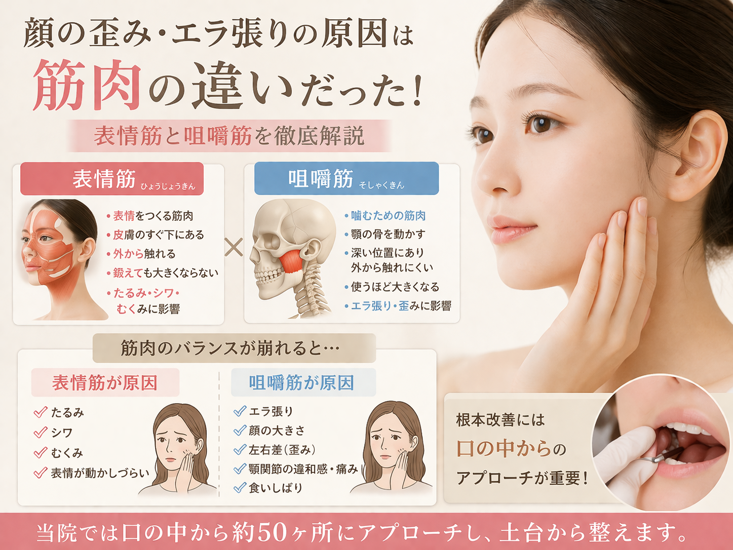 咀嚼筋に直接アプローチすることが重要です。
