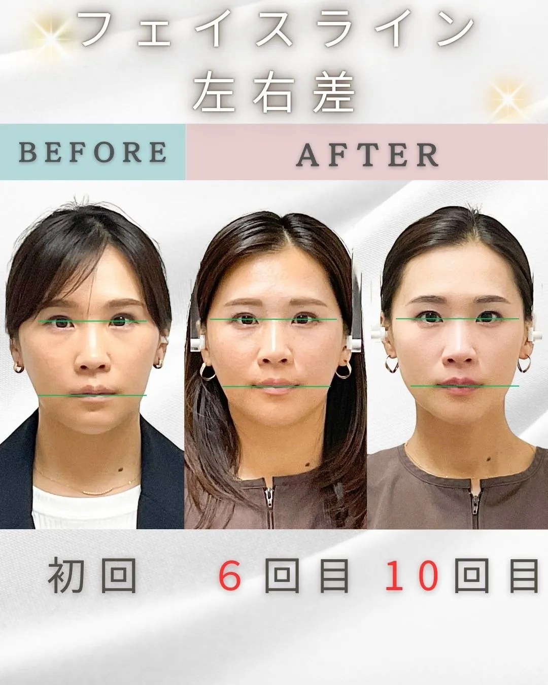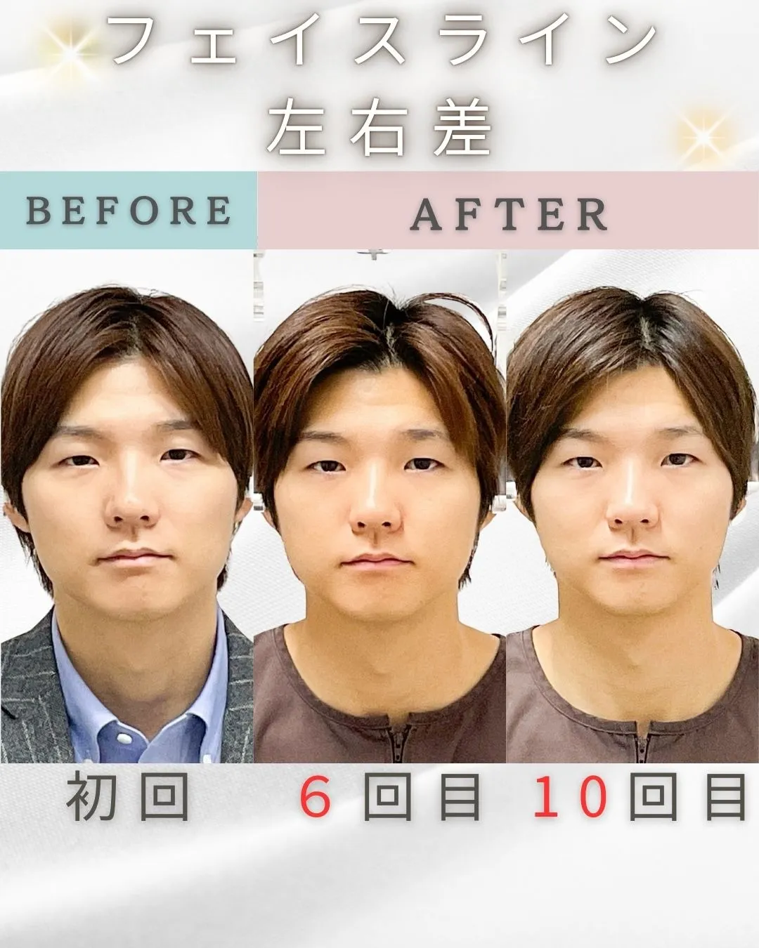 左右差のbefore・after ailes式 新宿・食いしばり・骨盤矯正・小顔矯正・顎関節症・顔の左右差ならailesシンメトリー矯正院 こんにちは! ailesシンメトリー矯正院です。 本日はbefore・afterの経過のお話しをしていきたいと思います。 以前ご紹介させていただいた患者様の6回、10回の経過になります。最初に撮ったbeforeの…